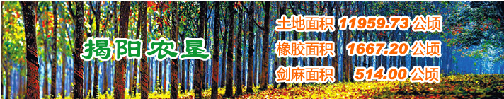 廣東省揭陽農(nóng)墾集團有限公司(農(nóng)墾局)下轄6個農(nóng)場有限公司。墾區(qū)管轄26個代管村,現(xiàn)有總人口5.11萬人,墾區(qū)土地面積17.77萬畝,目前種植天然橡膠3.13萬畝,水果 2.57萬畝,光伏農(nóng)業(yè)0.8萬畝,并探索發(fā)展一批特色產(chǎn)業(yè)等。